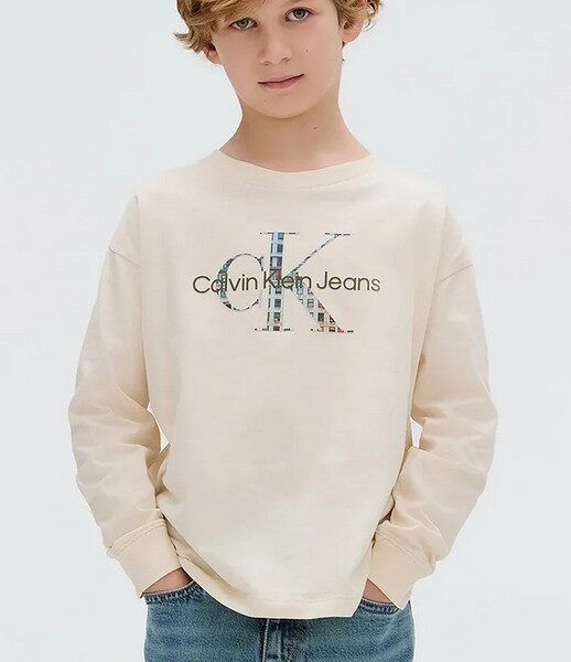 Calvin Klein Παιδική Μπλούζα Μακρυμάνικη για Αγόρι Κρεμ IB0IB02531-PGB