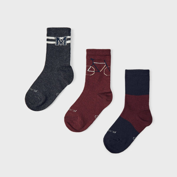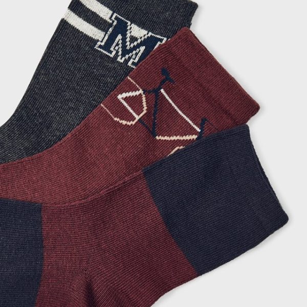 Mayoral Παιδικό Σετ 3 καλτσάκια με σχέδιο για Αγόρι Δαμασκηνί 12-10321-064
