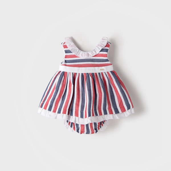 Mayoral Baby Dress with Stripes for Girl Red-Blue 22-01847-002