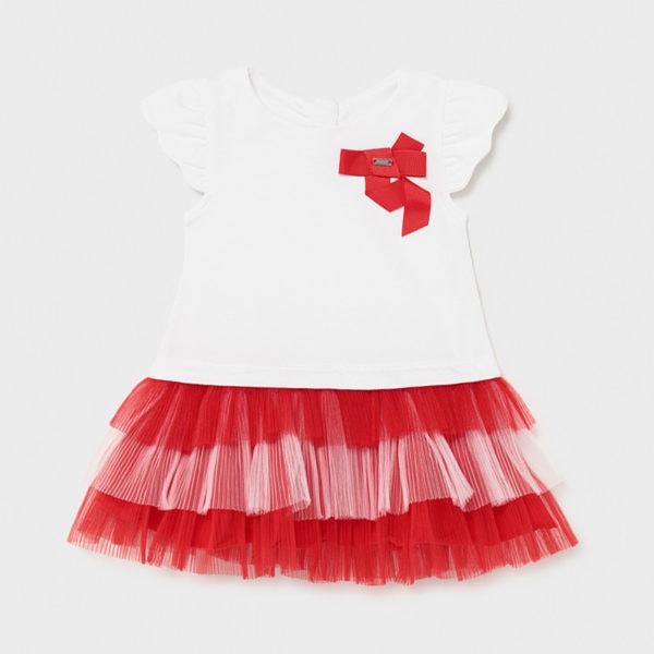 Mayoral Baby Dress for Girl White-Red 12-01970-093