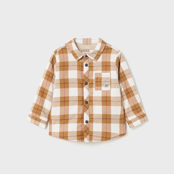 Mayoral Βρεφικό Πουκάμισο με Επένδυση για Αγόρι Καρό-Πορτοκαλί 13-02175-048