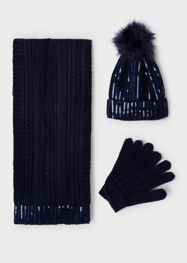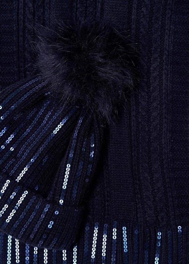 Abel & Lula Children's Set Beanie Scarves Birds for Girl Navy Blue 12-05946-083