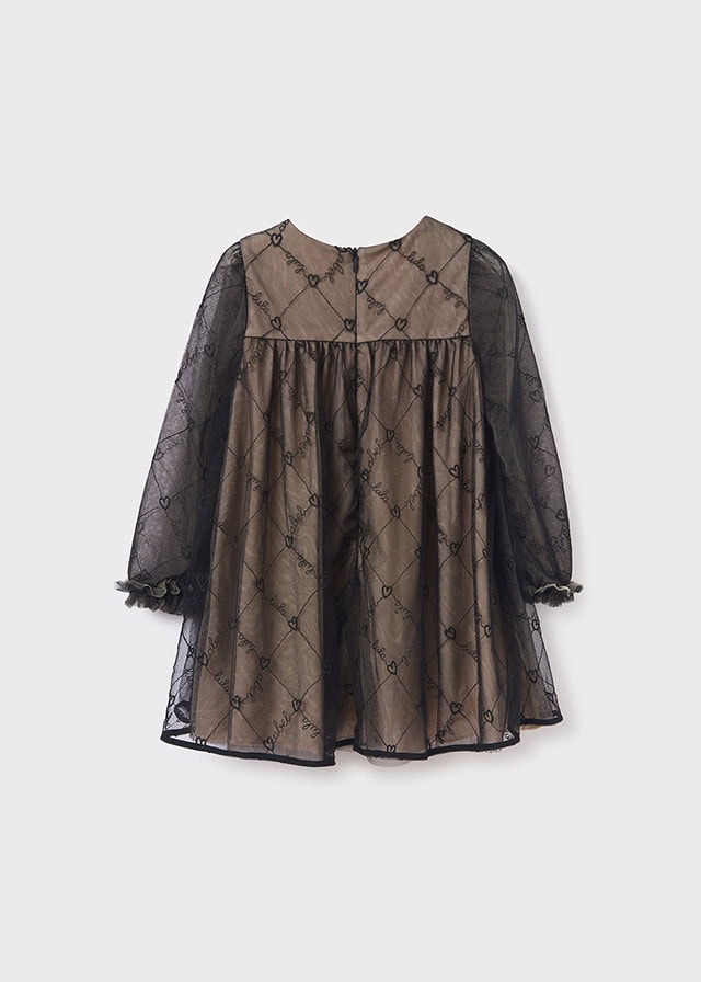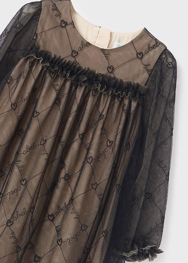 Abel & Lula Παιδικό Φόρεμα για Κορίτσι Μαύρο 13-05537-008, Φόρεμα Τούλι κεντημα logo, μαυρο