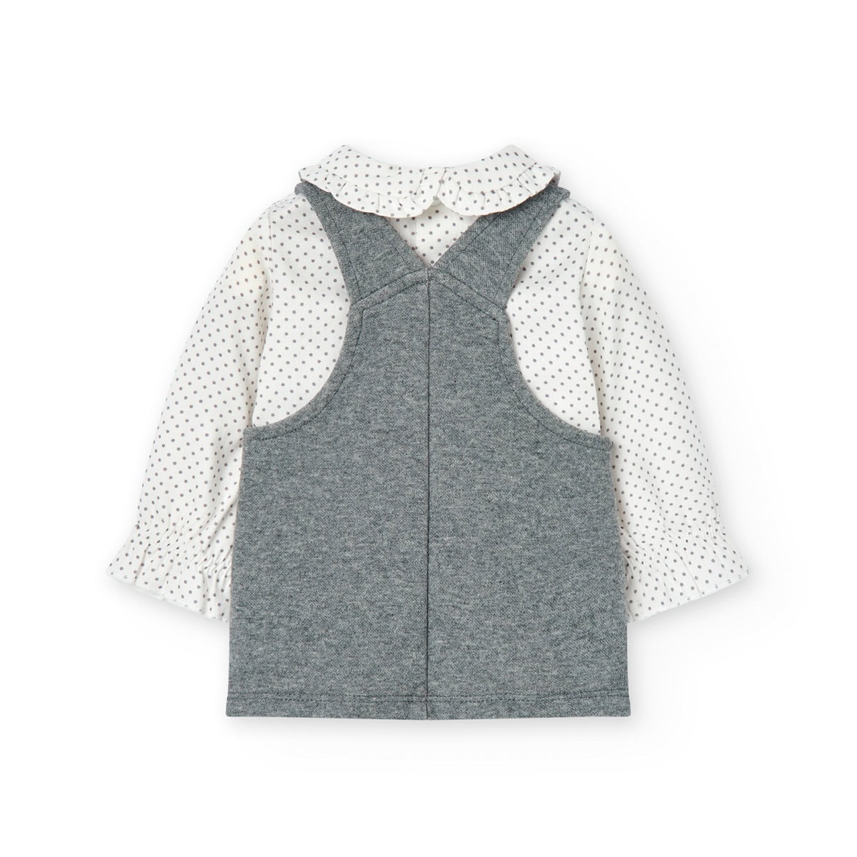Boboli Kids Salopette for Girl Grey 747143-8125, grey, Salopette Dress, Pack knit combined for baby -BCI, CHIC NB, Pullover:58%cotton 42%viscose Dress:85%cotton 15%polyester Lining:85%cotton 15%polyester