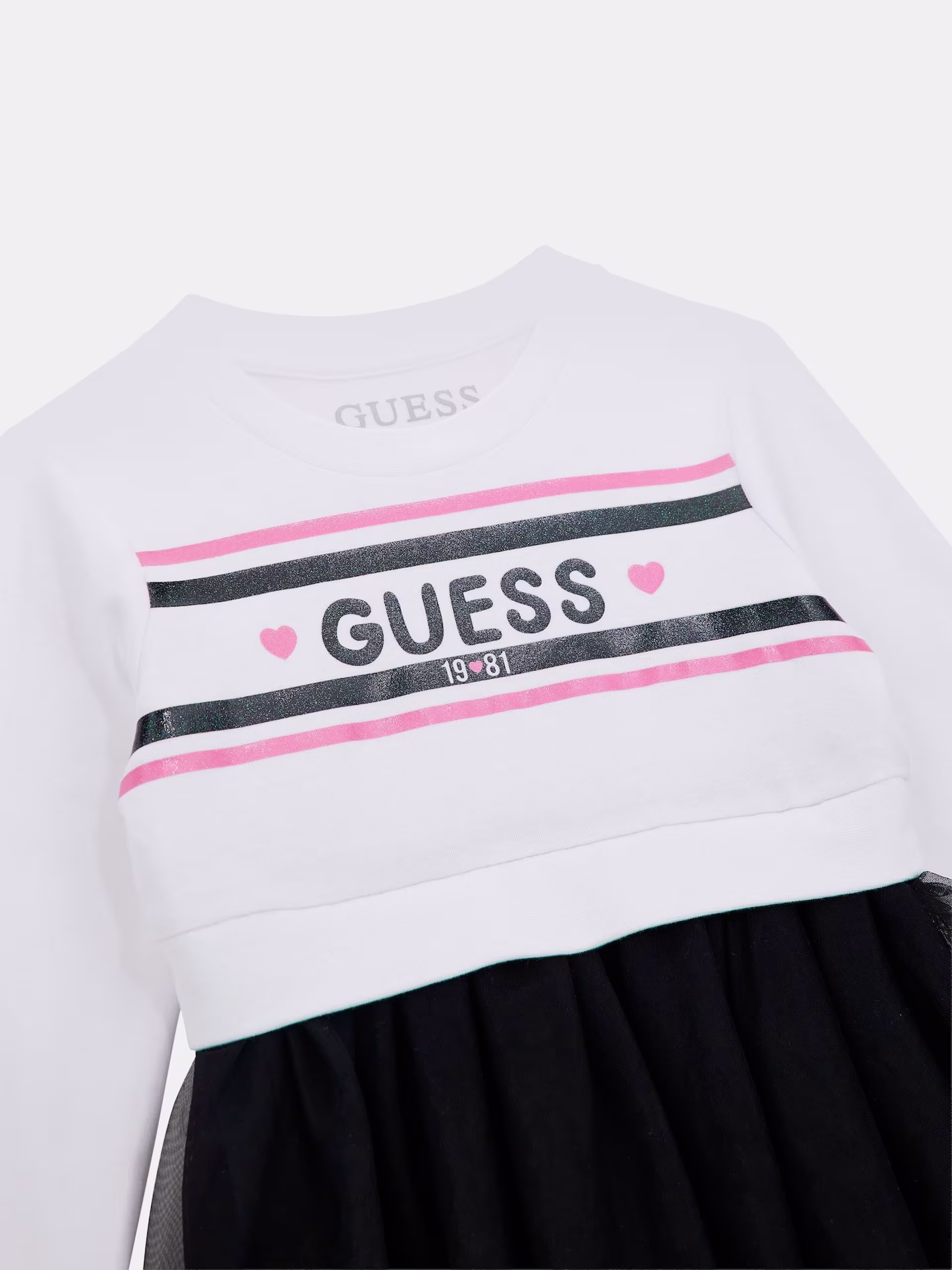Guess Παιδικό Φόρεμα για Κορίτσι Λευκό K5YK01KB8R0-G011 ,  LS MIXED FABRIC DRESS ΦΟΡΕΜΑ ΠΑΙΔΙΚΟ GIRL, 100% Βαμβάκι