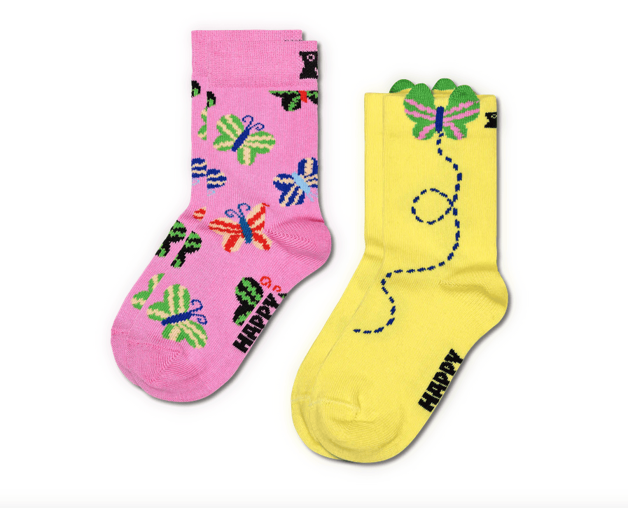 Happy Socks Παιδική Κάλτσα Σετ 2 Ζευγάρια για Κορίτσι Πολύχρωμες P000807-Kids-2-Pack-Butterfly-Socks
