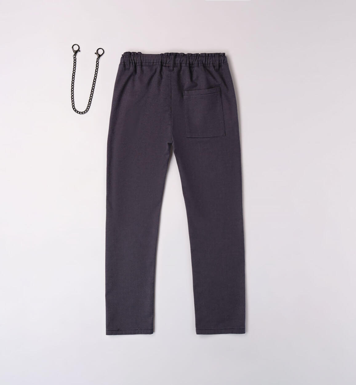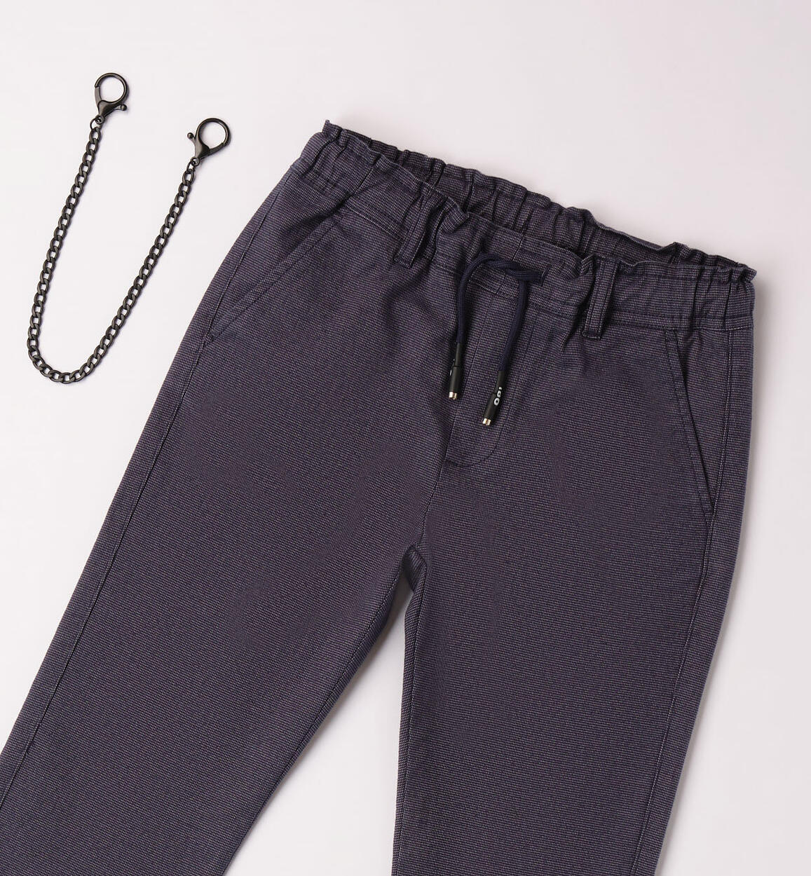 Shopping pants iDo made of soft stretch cotton with tiny prints. The waistband is adjustable thanks to the inner elastic with buttonhole and drawstring. Regular fit. Matching key ring.