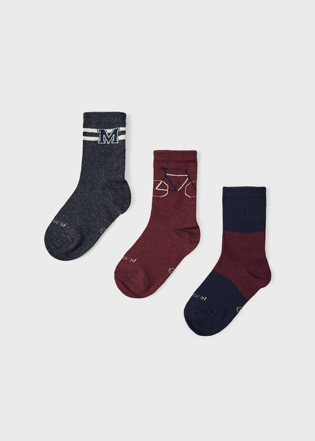 Mayoral Παιδικό Σετ 3 καλτσάκια με σχέδιο για Αγόρι Δαμασκηνί 12-10321-064