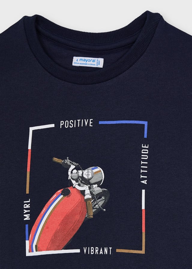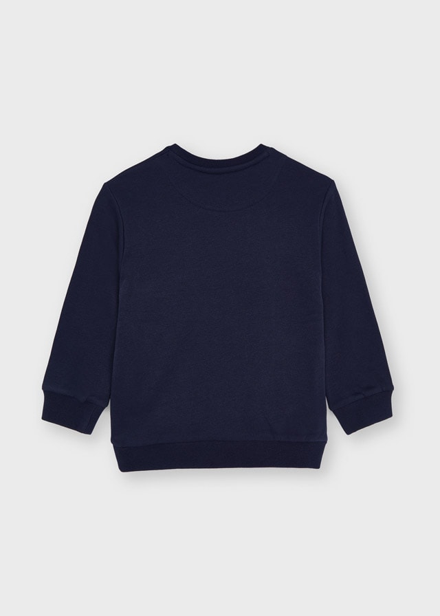 Φούτερ μακρυμάνικο για αγόρι από 2 έως 9 ετών. Στρογγυλεμένος γιακάς.. Μακό από 100% βαμβάκι.  Διακοσμητικές λεπτομέρειες: Σχέδιο στο μπροστινό μέρος.