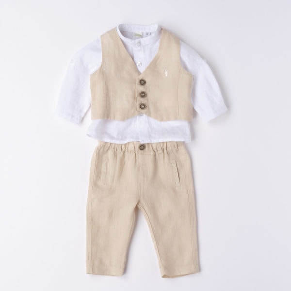 Vinteli Baptismal Set Suit for Boy White-Beige 5219