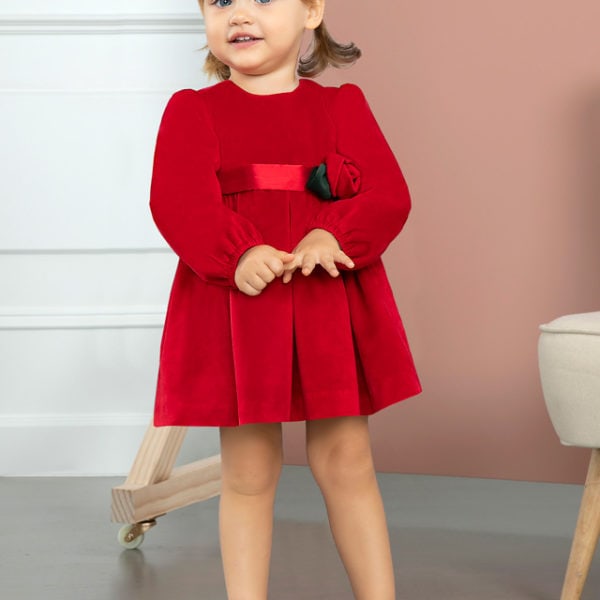 Abel & Lula Kids' Velvet Long Sleeve Dress for Girl Red 13-05596-09