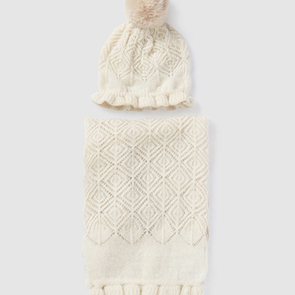 Abel & Lula Παιδικό Σετ Σκουφος Κασκολ Διάτρητο για Κορίτσι Εκρού 13-05976-004