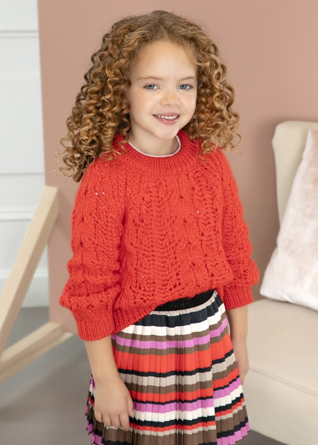 Abel & Lula Παιδικό Πουλόβερ για Κορίτσι Κόκκινο 13-05856-006, Ζερσευ ζακαρ Διάτρητο, κοκκινο