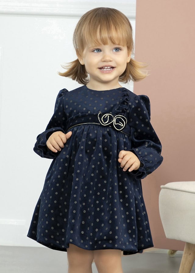 Abel & Lula Παιδικό Φόρεμα για Κορίτσι Μπλε 13-05506-073, Φόρεμα Βελούδινο Πουά χρυσο, ναυτ. μπλε