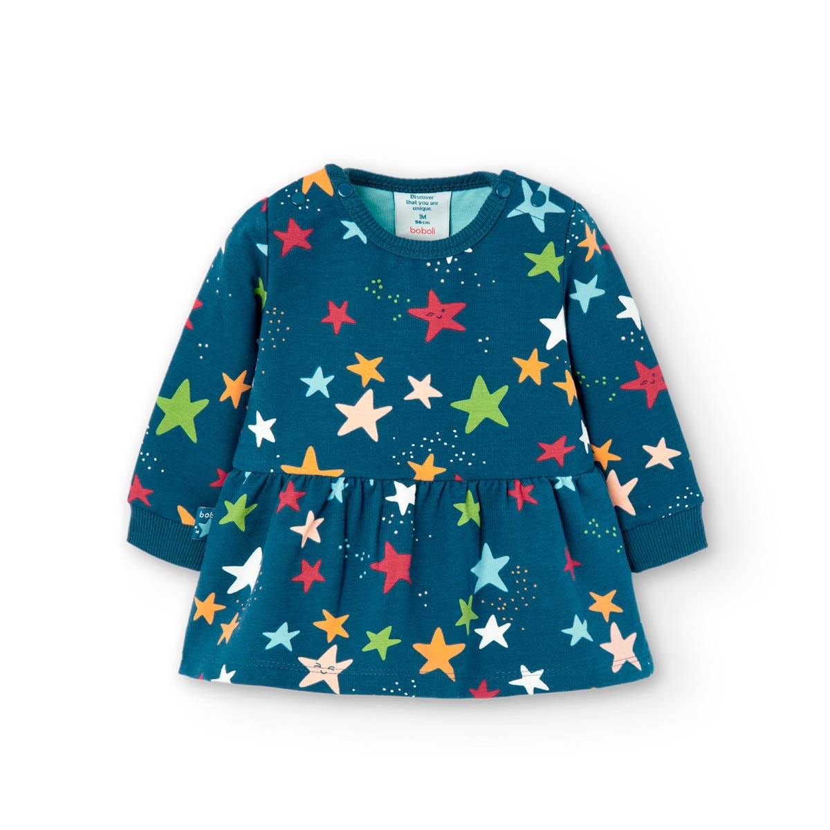 Boboli Παιδικό Φόρεμα για Κορίτσι Μπλε 147046-9191, print, Fleece dress “stars” for baby -BCI, NEW BORN, 95%cotton 5%elastane
