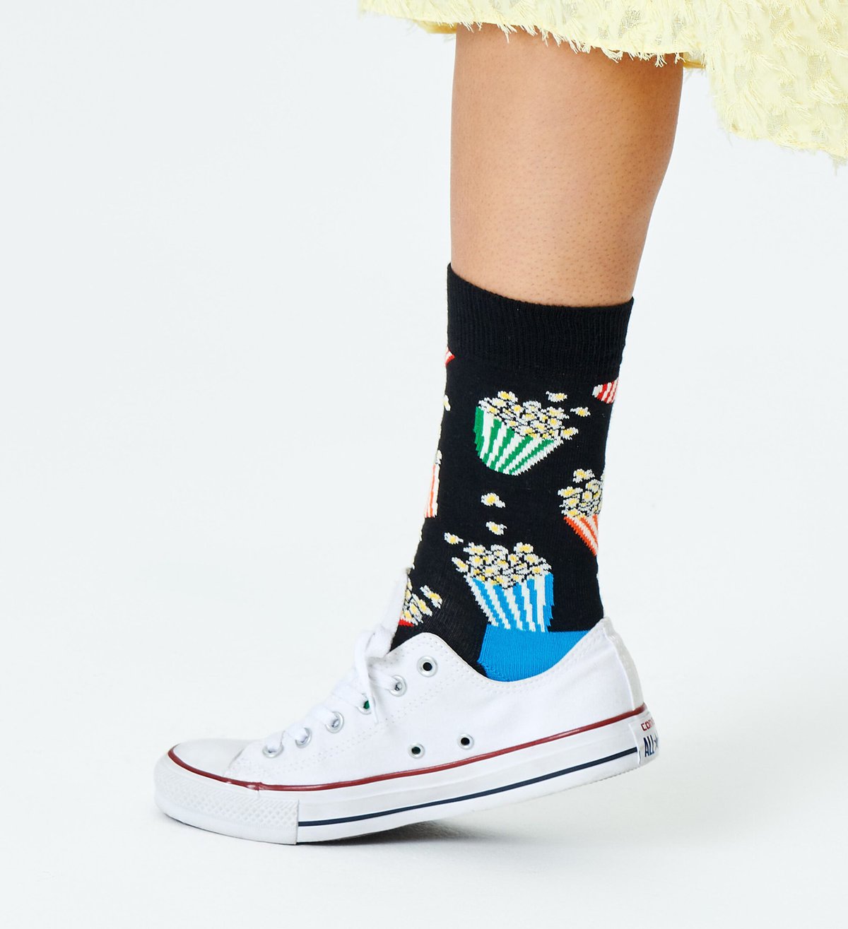 Κάλτσες ποπ κορν. Σε έναν κόσμο με περιορισμένες θέσεις στον καναπέ, που βλέπεις την ταινία από περίεργες γωνίες και χάνεις το καλύτερο κομμάτι ενώ είσαι στην τουαλέτα, μια κάλτσα έχει τη δύναμη να τα διορθώσει όλα. Για να τα κάνει πιο ανεκτά. Πιο μοντέρνα. (Δείχνει ωραία ακόμα και με ελαστικά παντελόνια.) Έρχεται σύντομα, σε ένα πόδι νέο εσένα. Κάλτσες ποπ κορν.
