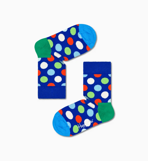 Στις παιδικές κάλτσες Happy Socks το μέγεθος 2 ετών εξυπηρετεί την ηλικία 12-24 μηνών. Το μέγεθος 3 την ηλικία 2-3 χρονών, το μέγεθος 6 την ηλικία 4-6 χρονών και το μέγεθος 9 την ηλικία 7-9 ετών.