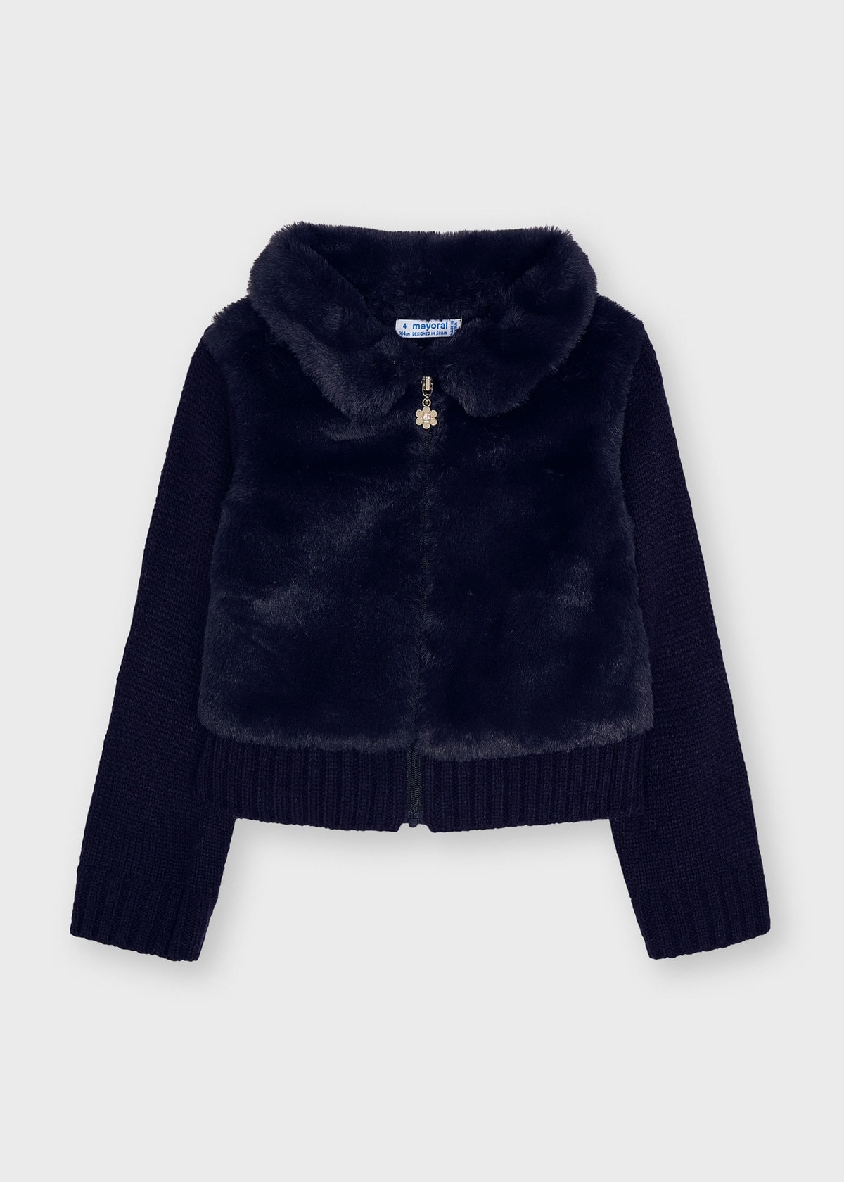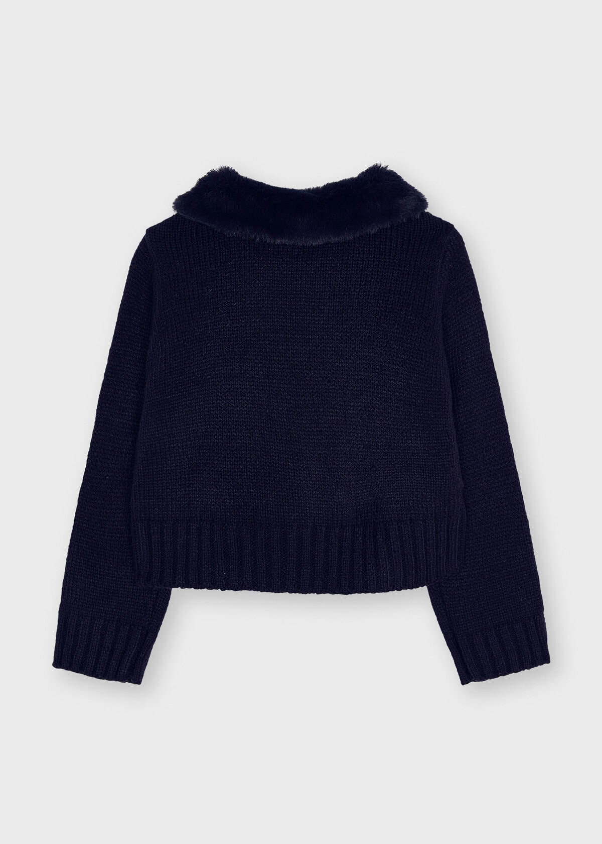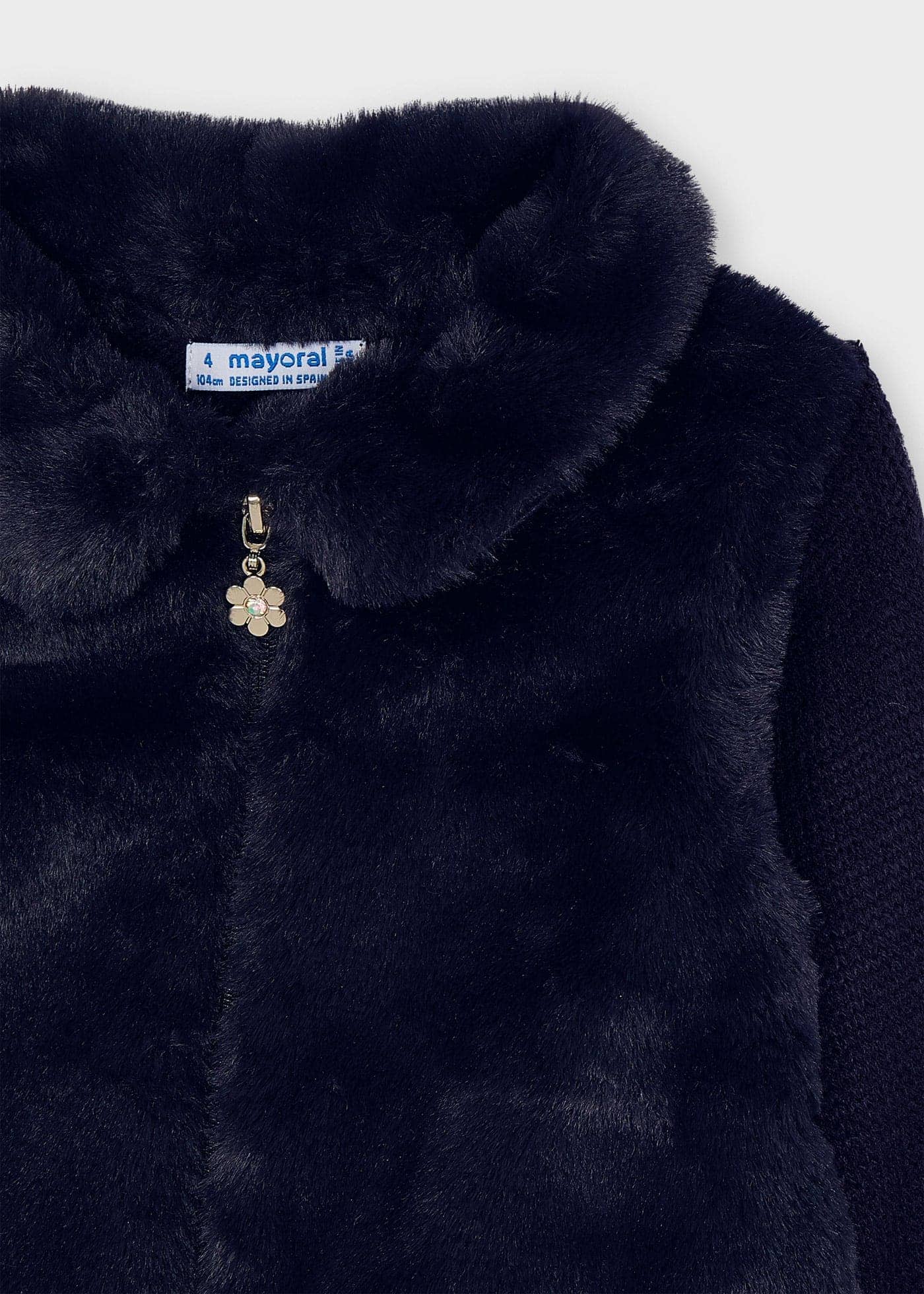 Mayoral Παιδική Ζακέτα Πλεκτή με Γουνάκι Κορίτσι Μπλε 12-04381-018