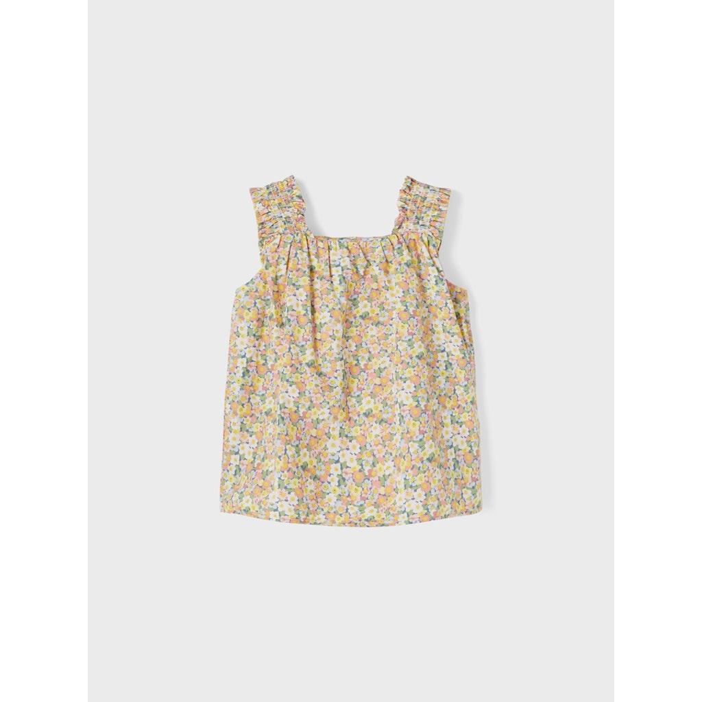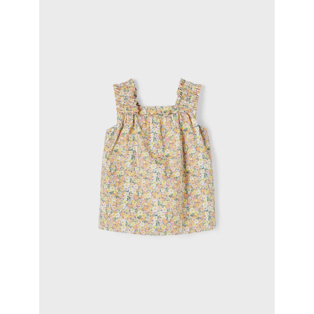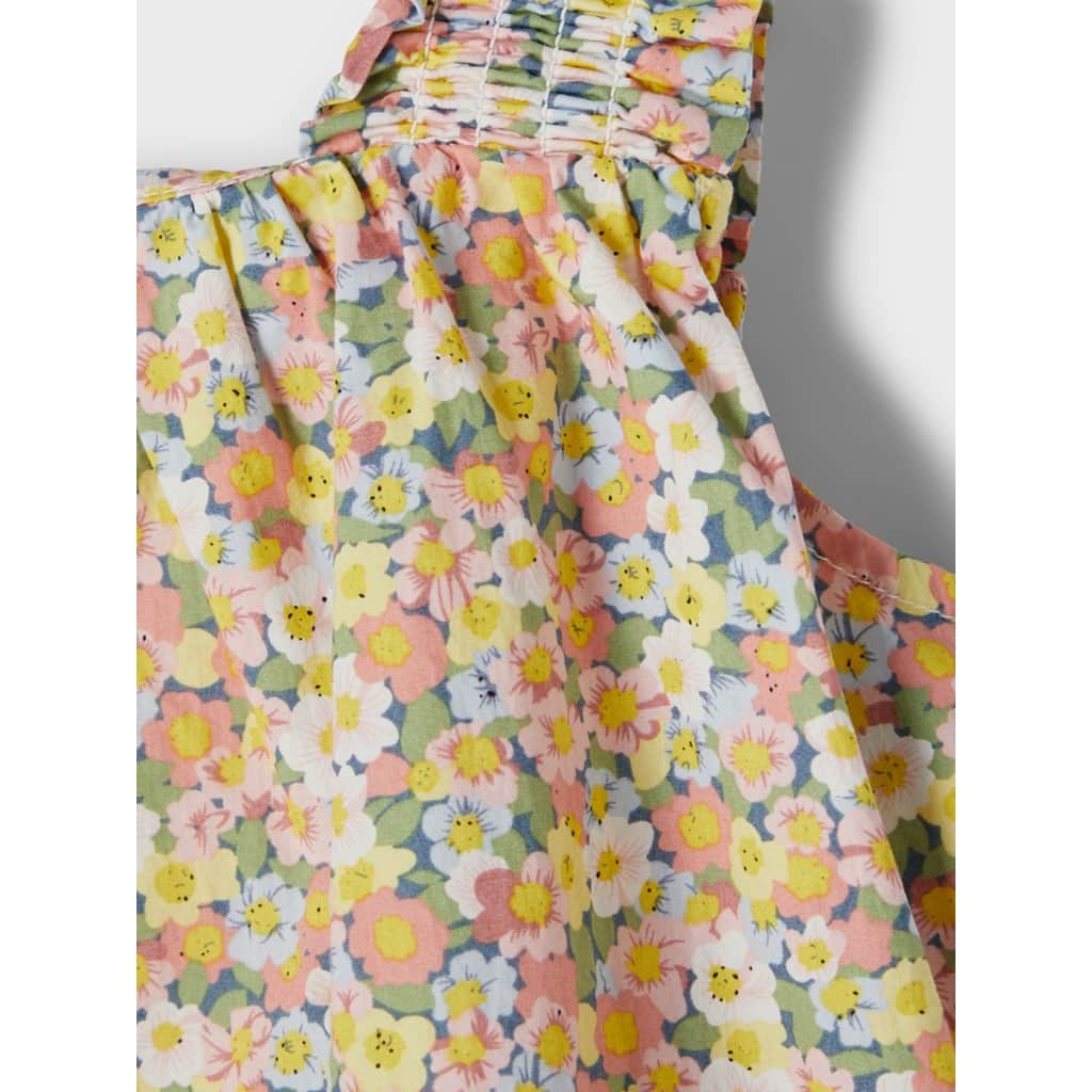 Detail Type : Top Strap type : Shoulder straps Extra details : Smock detail Print type : Print repeated allover the garment Occasion/styling : Experience light, life and nature in bright spring styles that add fun and colour to your child´s outfit FIT : Regular Fit NECK : Square Neck SLEEVE : Sleeveless (S/L)