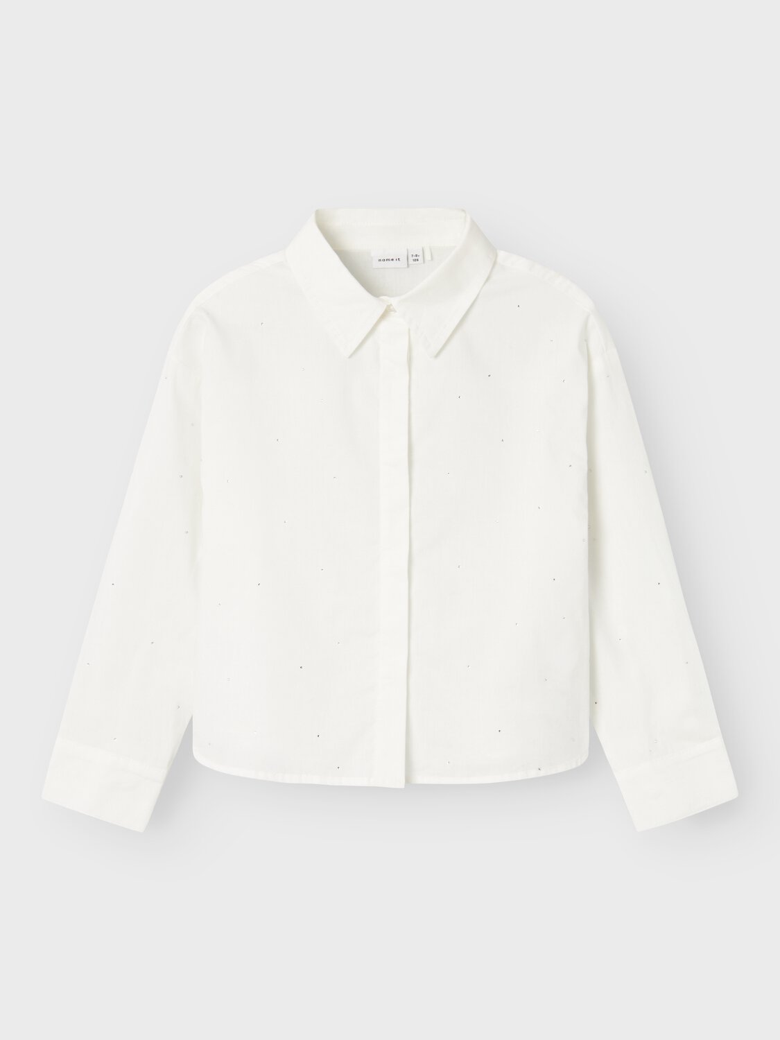 Name it Παιδικό Πουκάμισο για Κορίτσι Άσπρο 13235371-Bright-White, SHIRT – WITH SLEEVES FEM WOV CO100,100% Cotton,