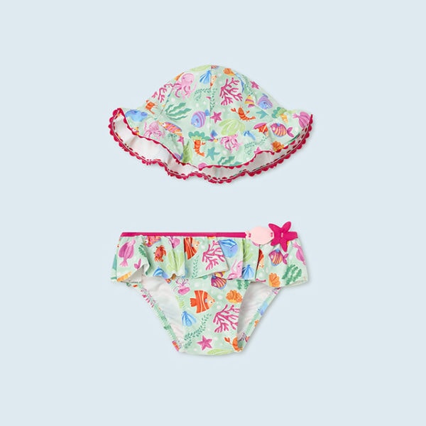 Mayoral Παιδικό Σετ μαγιο με Καπέλο για Κορίτσι Πράσινο 24-01633-073