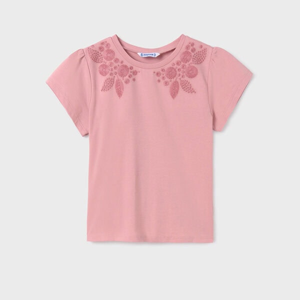 Mayoral Παιδική Μπλούζα κοντομάνικη κεντητή για Κορίτσι Ροζ 24-06012-048