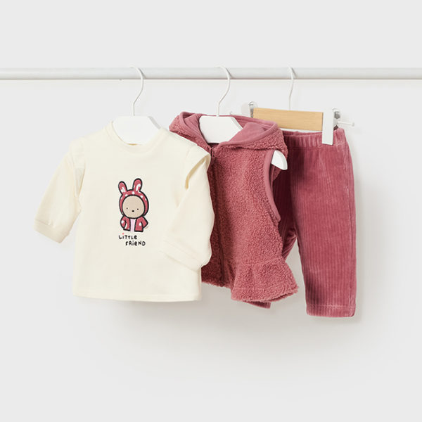 Mayoral Βρεφικό Σετ Φόρμα 3 τεμαχια γιλεκο μπλούζα παντελόνι για Κορίτσι Ροζ 13-02667-072