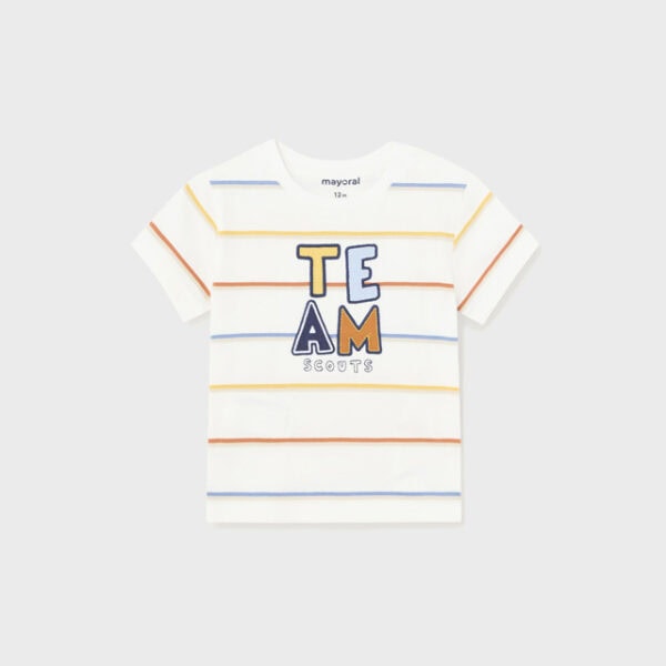 Mayoral Παιδική Μπλούζα κοντομάνικη ριγε για Αγόρι Λευκό 24-01019-093